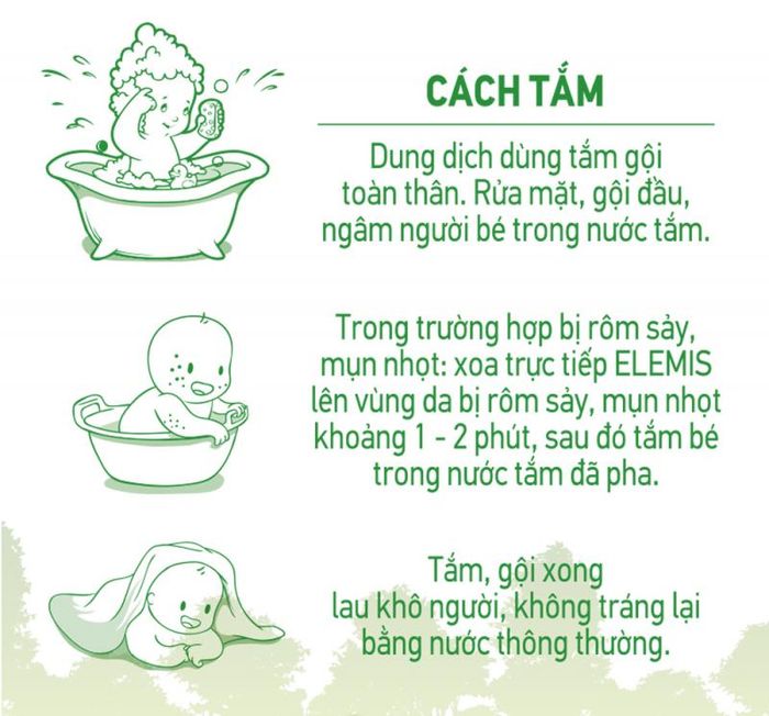 - For newborns (from 1 month to under 2 months): Mix 25 ml of solution with 5 liters of warm water for a bath (or soak). After the herbal bath, avoid using regular water. Bathe (or soak) 3 times a day.