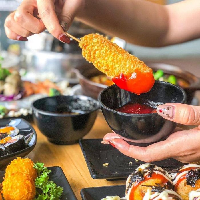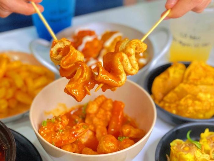 Korean Fried Chicken offers a distinctive taste with crispy, golden-brown chicken on the outside and tender, juicy meat on the inside, complemented by various sauces like spicy cheese sauce, creamy onion sauce, five-spice sauce, sweet and sour sauce, and honey mustard sauce – all providing a taste of Korea. At Chicken Plus Nha Trang, the signature dish, Red Chicken with Golden Sauce, combines crispy fried chicken with a spicy cheese sauce, creating a beautiful visual with the vibrant red of beetroot flour and golden cheese sauce. The sauce’s rich, cheesy aroma mixed with the heat of Batri chili will make you fall in love with every bite. A hidden gem in the menu is the golden sauce, the legendary spicy cheese sauce that has become a bestseller. The chicken wings are coated with a crispy exterior while the meat remains juicy and tender. Pair it with Chicken Plus' signature sauces like five-spice, creamy onion, or spicy cheese for a deliciously addictive flavor. Moreover, dishes like chicken drumsticks, fried chicken, boneless fried chicken, and other options always keep fried chicken lovers coming back. The best part is that when you order a main dish at Chicken Plus, you get free access to the buffet line, where you can create your own rice bowl, salad, kimchi, hamburger, shrimp crackers, and more.