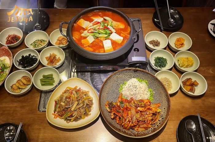 Korea Restaurant Jejuga offers a Hanok-inspired dining experience, a traditional Korean architectural style that blends elements of Chinese and Japanese design. The warm, elegant ambiance of the restaurant is perfect for families and friends to gather and enjoy authentic Korean dishes. You can snap beautiful photos while relishing a range of traditional Korean foods. The BBQ menu features tender beef and pork, with options like boneless short ribs, thinly sliced beef, and seasoned pork belly. For those who prefer variety, there are also soups, rice cakes, cold noodles, bibimbap, and kimbap to choose from. The restaurant ensures quick service with fast meat refills, and the Korean soju is the perfect drink to complement your meal. With exciting offers and great Korean flavors, Korea Restaurant Jejuga guarantees an unforgettable experience for all visitors.