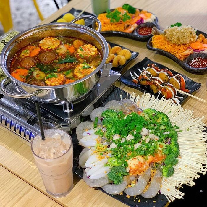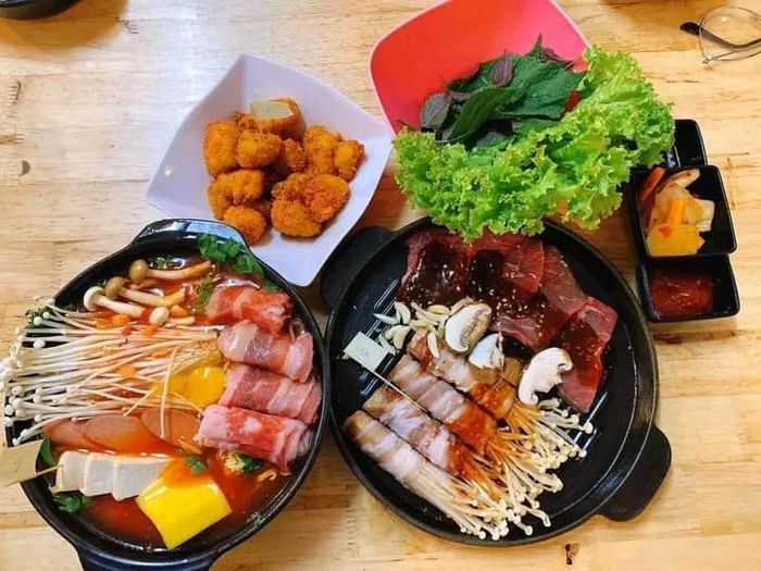 King BBQBuk Buk – Nha Trang is a Korean BBQ buffet spot that perfectly captures the essence of street-style dining in Seoul, right here in Nha Trang. It's no surprise that Buk Buk is one of the most beloved Korean eateries in the area. With a spacious setting equipped with odor-extracting ventilation, diners can enjoy their meals without worrying about lingering smells on their clothes.