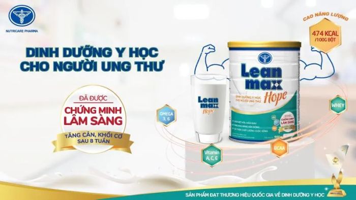 Leanmax Hope is a medical nutrition product for cancer patients, produced by Nutricare Nutrition Company. It offers high-energy nutrition that is easy to digest and absorb, helping patients regain strength and immunity during treatment. Clinical studies show that Leanmax Hope helps cancer patients gain weight and muscle mass after 8 weeks.