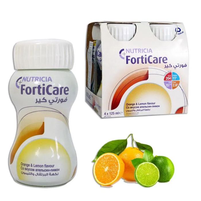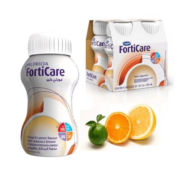 - Forticare’s high concentration provides a significant amount of protein, energy, and minerals in just 125ml, offering complete and balanced nutrition for patients without needing additional food. It also contains fiber and all the essential vitamins and minerals suitable for long-term use by patients with digestive difficulties.