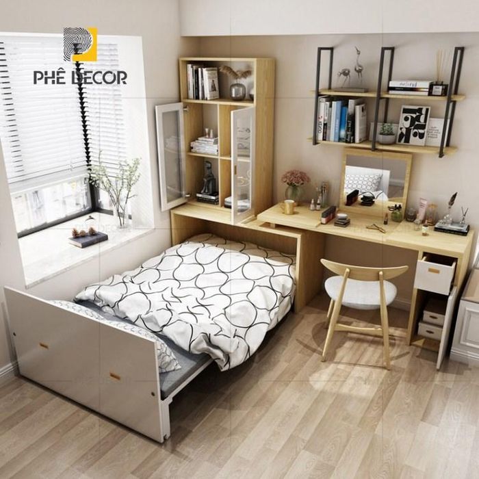 Additionally, Phê Decor offers a unique collection of multifunctional desks combined with beds. These innovative pieces include a desk, bed, and flexible storage options, all designed to fit your personal space and style. From color choices to Scandinavian-inspired decorative details, they are perfect for modern living spaces.