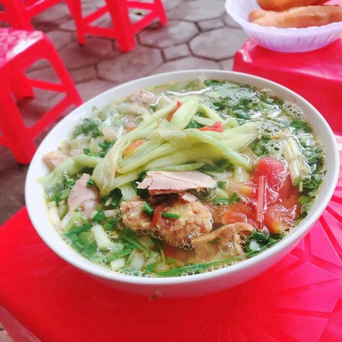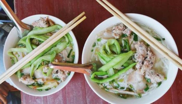 If you're a fan of bún dọc mùng, the Bún dọc mùng Võ Thị Sáu restaurant is a must-visit spot. Located right on the sidewalk near Hồ Quỳnh, it's easy to find. The friendly and welcoming owner ensures excellent service. On cool breezy days, there's nothing better than enjoying a large bowl of bún while overlooking the lake.