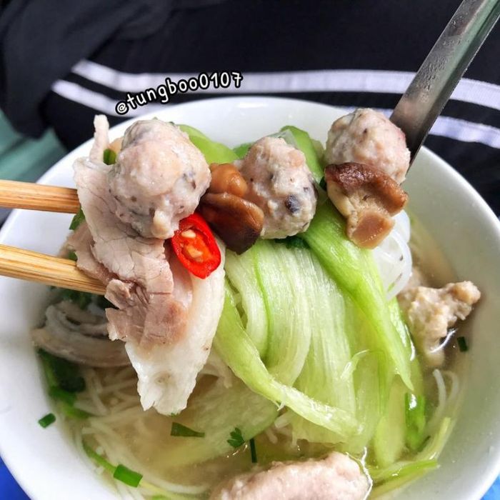 While the decor may not be the main focus, the quality of the bún dọc mùng is the shop’s top priority. Each bowl served is packed with flavor. The bún is clear and perfectly cooked, with medium-sized noodles. The homemade meatballs are generous and flavorful, with a strong mushroom scent. The pork is simmered to tenderness, with just the right amount of fat. Overall, Bún bà Minh is a prime contender for the question, "Where in Hanoi can I get the best bún dọc mùng?"