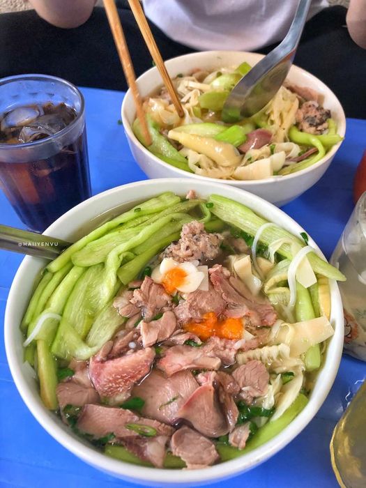 If you're from the South and visiting Hanoi, make sure to try a traditional Bún Dọc Mùng. Bún Dọc Mùng carries a strong Northern flavor that you can experience at a long-standing restaurant located at 383 Bạch Mai. Known for its delicious taste and excellent service, this place serves generous bowls of Bún Dọc Mùng, packed with flavor down to the last drop. The restaurant uses fresh bamboo shoots, ensuring they don’t cause irritation, and prepares them with a satisfying crunch.