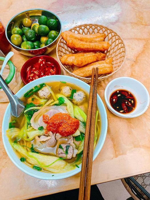 With many years of operation, Bún mọc dọc mùng Hàng Trống has perfected its recipe for mouthwatering meatballs. These meatballs are blended with shiitake mushrooms, offering a tender bite that doesn’t dry out like those at other places. The pork hock served in each bowl is cooked to a perfect balance of chewy and soft, and is full of flavor. The broth here is clear and delicious, leaving a lasting impression on diners. The dọc mùng is sliced and blanched just right, soft yet crunchy with a natural sweetness. If you feel your meal might be a bit light, you can order an extra serving of crispy fried doughsticks to accompany your bún. The owner is very friendly and always ready to suggest dishes if you're unsure about what to try. It may take some effort to find the shop hidden in the alley, but once you taste the dish, it’s definitely worth the journey.