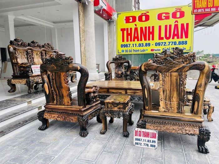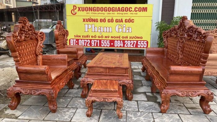 Currently, Bảo Lộc Woodworking Factory offers a wide range of natural wood furniture products, including beds, cabinets, dressing tables, Minh Quốc chairs, Aulacese-style sofas, TV cabinets, grandfather clocks, dining rooms, bedrooms, altars, and many other wood-crafted interior items. The products are crafted from various premium natural woods like rosewood, red ironwood, Nam Phi sandalwood, Lao sandalwood, ebony, and more.
