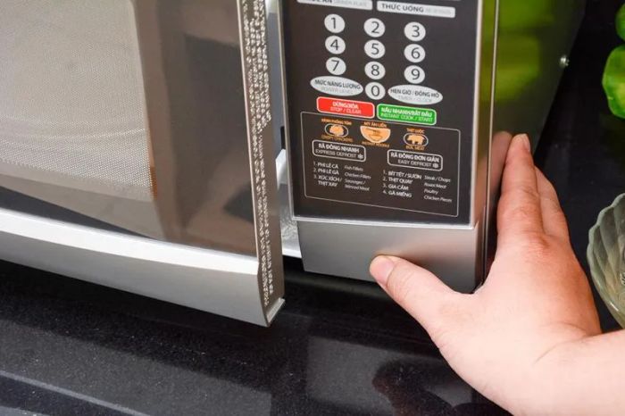 You should seek out reputable stores or large electronics supermarkets to purchase your microwave as these places offer warranties, anti-counterfeit labels, and a higher level of assurance. This will give you peace of mind knowing you're purchasing an authentic product and avoiding the low-quality, counterfeit items that may be circulating in the market. Even after you’ve decided to buy, make sure to thoroughly check the back of the microwave for a label with clear brand information, product capacity, wattage, and country of origin. You can also check the product at well-known electronics supermarkets such as Điện Máy Xanh or Nguyễn Kim.
