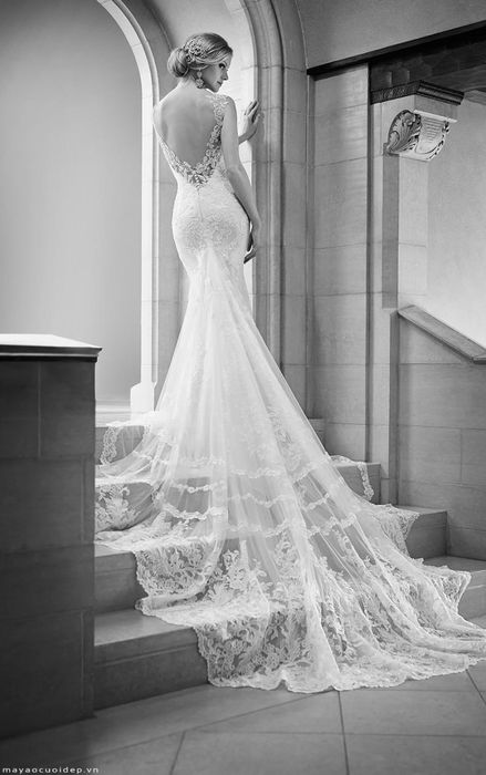 Lace is one of the most popular materials used in wedding dress designs, especially for delicate details. Among the various types of lace, we are referring to premium, ultra-soft lace that is often used around the neckline and sleeves, creating an elegant and understated dress. This lace design inherits the sensual appeal of off-shoulder or strapless styles, while still maintaining a formal, refined look perfect for weddings attended by guests of all ages.