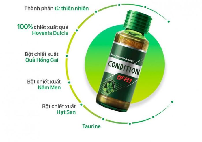 - In addition to the above ingredients, Condition Hangover Cure also contains several other components that help reduce fatigue and accelerate alcohol metabolism, making it effective for alleviating intoxication after drinking.