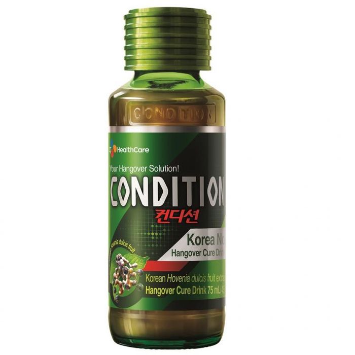 Produced by CJ Healthcare, a well-known company in South Korea, Condition is a highly effective drink for combating hangovers. The product is imported and sold in Vietnam, and it comes in a liquid form contained in a small, convenient green glass bottle that is easy to carry anywhere. This is why it is called Condition Hangover Cure.