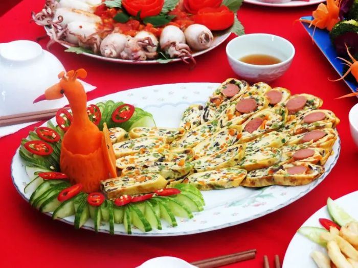 The dipping sauce, placed at the center of the table, symbolizes the simplicity and elegance of Vietnamese cuisine. Everyone shares this sauce, representing the unity and togetherness of the family.