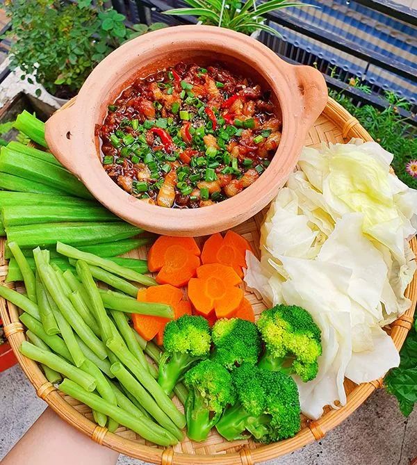 The Rô Phi fish in a net provides a rich source of protein, complemented by fresh lettuce and tomato sauce, which also adds a healthy dose of vitamins. On chilly fall or winter nights, this dish can truly warm the heart and soul.