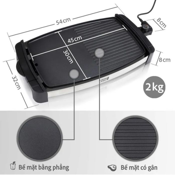 Sunhouse is a renowned Vietnamese brand. The Sunhouse Electric Grill stands out among electric grills in the market due to its spacious cooking surface, quick food preparation, and energy efficiency. The grill's handles are made of stainless steel with a plastic coating, ensuring good heat insulation.