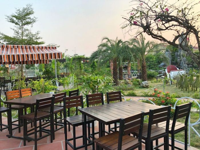 As for the garden space, guests will be amazed by the lush greenery at Anh Khoa Garden - Beer & Coffee. The winding path leading to the main house is bordered by velvety green grass, with bursts of yellow and red from flowerbeds adding color. Palm trees, coconut trees, artificial stone features, and swings enhance the garden's beauty, making it feel like a park. Indoors and on the rooftop, the spaces are equally delightful. No matter where you are, Anh Khoa Garden ensures you'll enjoy fresh beverages and high-quality meals.