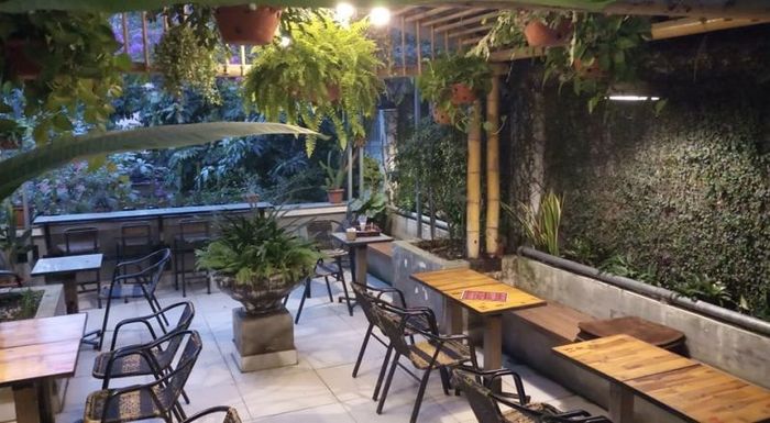 With its spacious design, Việt Coffee is decorated in the classic style of a tea and coffee house, surrounded by lush greenery. The scenery here is romantic, serene, and close to nature. The dominant green of the plants blends perfectly with the vibrant colors of various flowers, creating a picturesque atmosphere.