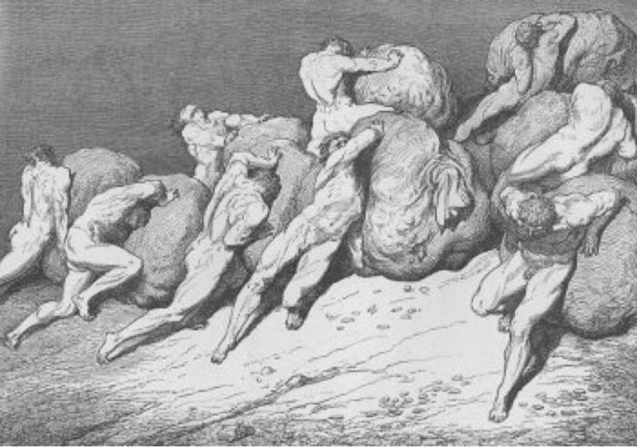 Additionally, it holds the souls of those who, in life, sought wealth through illegal means, such as usury. Legal wealth, in this context, can only come from nature’s gifts and personal labor.