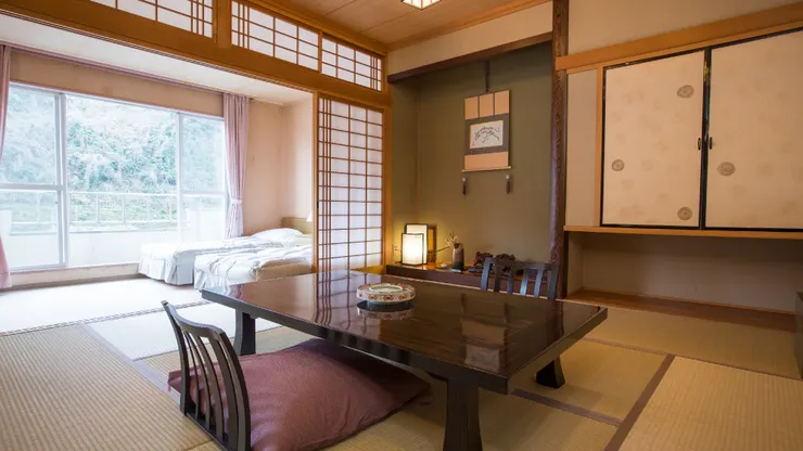 Walk across the suspension bridge and arrive at Amagase Kanko Hotel Seitenkaku, where guests enjoy a relaxing stay surrounded by mountains and streams. Amagase Onsen is one of the Oita Prefecture's quality hot springs. This hotel offers various kind of onsen, including open-air baths, ashiyu (footbath), and mushiyu (steam bath) as well as newly built gambanyoku (stone sauna). Japanese-Western style guest rooms with Western style beds are available in addition to the Japanese-style guest rooms with tatami mat floors and futon bedding.