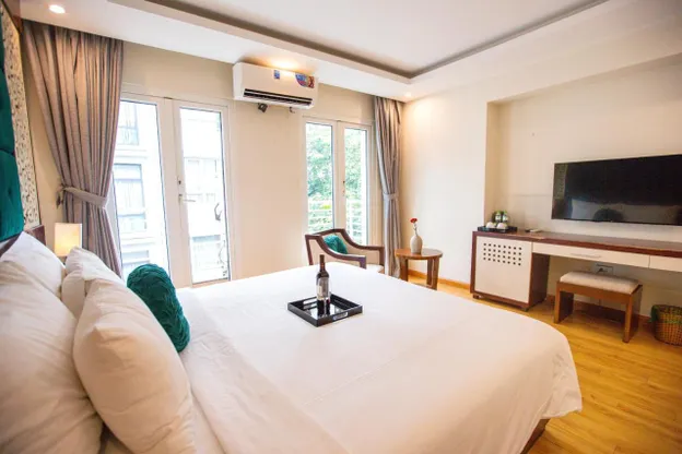 Tại khách sạn, chúng tôi có nhiều loại phòng phục vụ mọi nhu cầu của bạn. Mỗi phòng đều được trang bị đầy đủ tiện nghi, TV màn hình phẳng, điều hòa và ban công để bạn có thể thư giãn và thưởng thức không gian của Hà Nội.