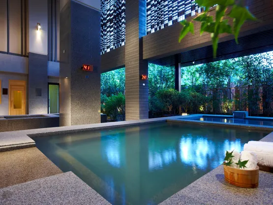 Guests are required to wear a swim cap and swimsuits when using outdoor hot spring and swimming pool.