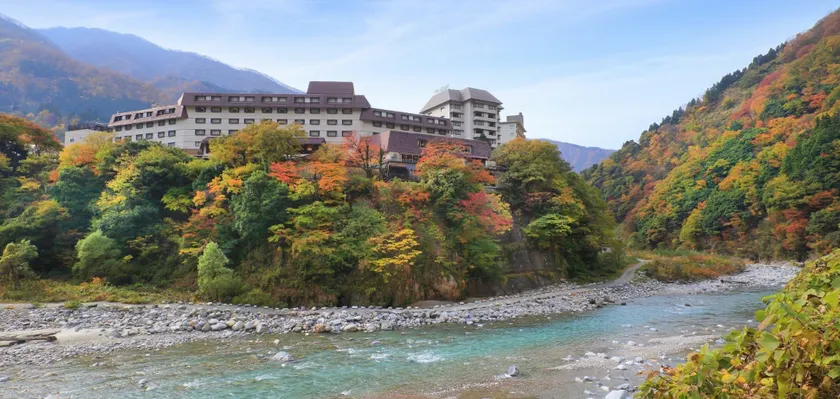 Approximately 30 min by Toyama Chiho Railway Bus from Toyama Airport. Then get off at Unazuki-Onsen station on Toyama Chiho railway line and 3 min walk from here / 20 minutes drive from Kurobe I.C. on Hokuriku Expressway