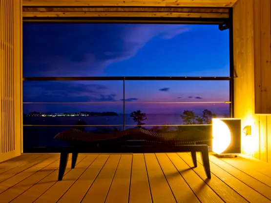 A recently opened lodging with beautiful ocean views from outdoor bathing areas in every room. Limited five groups per day so you can enjoy a fully relaxing time.