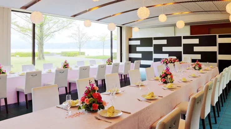 Wakasamikata Kirara Onsen Hotel Suigekka is an isolated spa inn overlooking Lake Suigetsuko, which can be reached within 20 minutes from Mikata Station by car. The hotel is especially known for its sumptuous kaiseki dishes with lavish amounts of crab and other seasonal seafood. The spotless guest rooms are available in both Western and Japanese style. Inside the hotel is a number of hot baths and saunas that overlook the Suigetsuko and the mountains.