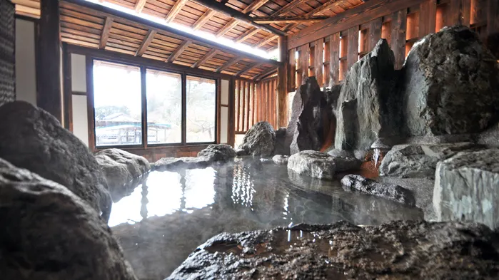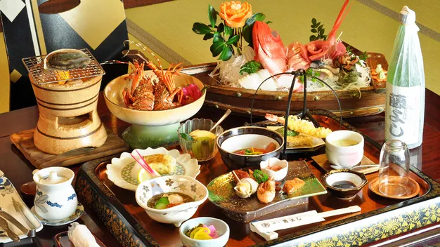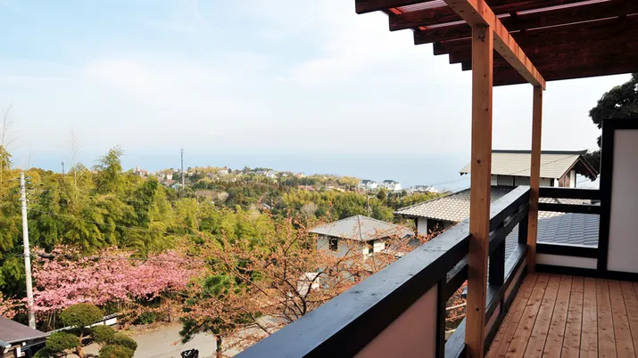 Situated on the mountainside with expansive view of Sagami bay. For dinner we offer 10 dishes and sumptuous seafood such as locally caught alfonsino and raw tuna that are served in a boat-shaped dish. Also you will enjoy our famous breakfast including turban shell, scallop and home-made salted dried fish grilled on the charcoal stove. Surrounded by great nature you can relax in the each handmade open-air bath and feel the comfort same as your home.