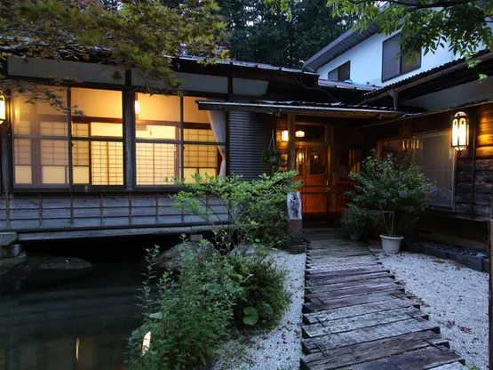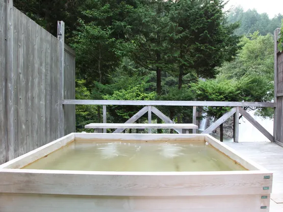 Nestled in the cypress woods of Kiso, Takimi Onsen Takimi no Ie is a traditional Japanese-style space that accommodates only one guest group at a time. A pick-up service is available upon prior reservation for the 30 minute drive from JR Nagiso station. Guests can unwind in the open-air bath created from cypress woods while listening to the calming sound of the waterfall nearby. Dinner consists of ingredients such as freshly prepared iwana (char or trout fish) and Shinshu beef.