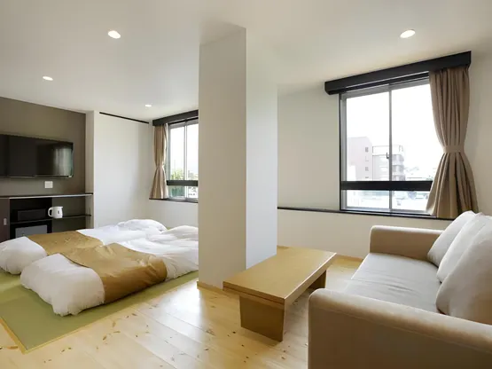 The bedding in the room is a mattress with a thickness of about 15 to 20 cm + the Japanese style Futon.