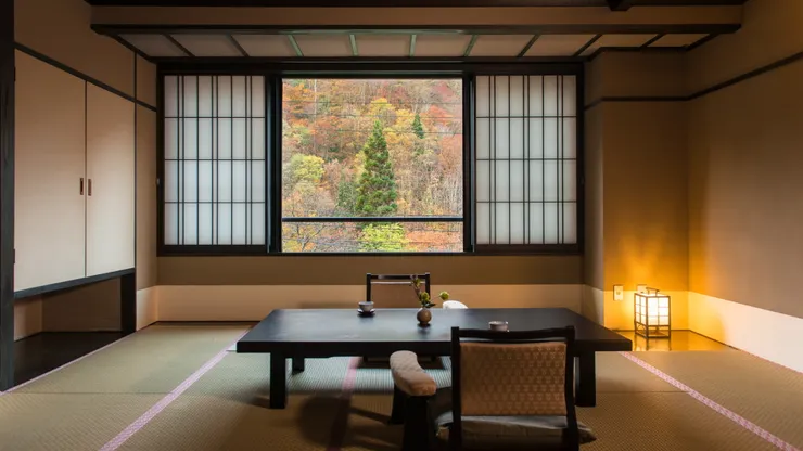 This secluded 11-room Yamanoki inn is tucked away in the depths of Yonezawa. Guests can relax in either of the stone or cyprus baths, fully sourced by the curative waters of the Shirabu onsen. All baths offer a stunning views of the mountains surrounding the area. The inn serves a luxurious kaiseki course, featuring seasonal mountain ingredients and melt-in-your-mouth delicious Yonezawa beef. Guests may choose to stay in either a Japanese or Western-style guest room, both equipped with a TV, tea-set, loungewear, and internet access.