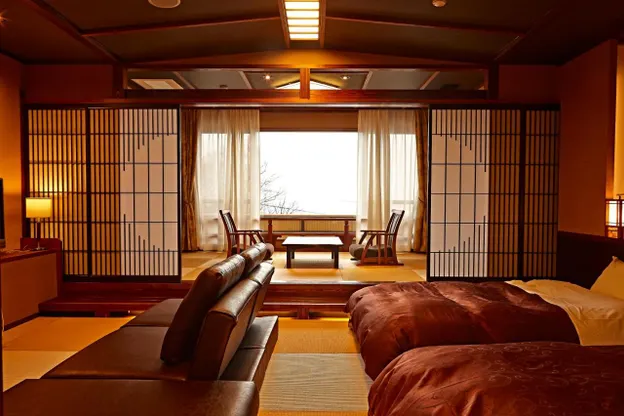 Nebuta Onsen Kaiyu Noto no Sho is 10 minutes from Wajima station on the Noto railway in Ishikawa prefecture. There is a reservable shuttle from Wajima station to the hotel. The hotel is traditionally Japanese, featuring tatami mats, lacquer ware, and Japanese paper decor. Guest rooms are Japanese-style and accommodate up to 5 people. Indoor and outdoor alkaline hot springs are available for guest use, and are a main feature of this hotel for locals. Wired high-speed internet access is available.