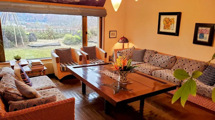 A blissful place. Admire the moon rising behind the Zao Mountains from the comfort of Meigetsuso.