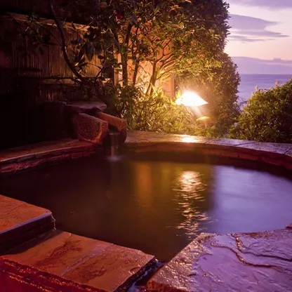 Has a free reservable outdoor bath where you can view the ocean, and the dishes using Ise lobster, abalone, and red bream is popular