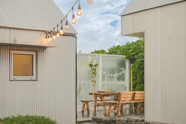 3. Dining building: Table and kitchen facilities for 10 or more people