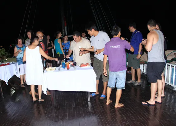 Chúng tôi tự hào phục vụ bữa sáng, bữa trưa và bữa tối tại nhà hàng trên du thuyền với thực đơn phong phú. Quán bar trên tàu luôn sẵn sàng phục vụ nhiều loại đồ uống độc đáo để bạn thưởng thức.