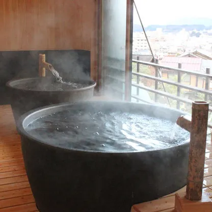 Guests can enjoy popular kaiseki cuisine (traditional multi-course dinner) with delicious Hida beef. There is also an open-air bath made of hinoki (Japanese cypress). Located inside the Shiroyama Park in a quiet environment, the city view from the lobby i