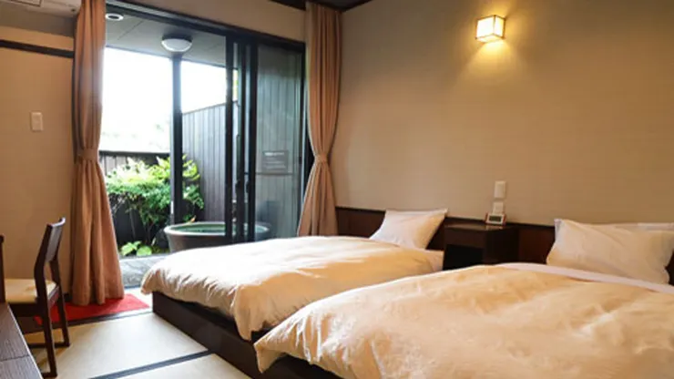 Opening on April 1, 2015, this long-awaited lodging facility includes each guest room with open-air bath on the premises of Happu no Yu hot spring day spa.