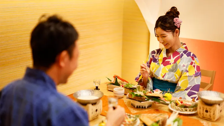Kawaguchiya Kinsoaki Riverside Hotel is a 60 minute drive along national route 9 starting from the Wadayama interchange on the Kitakinki-Toyooka Expressway. This ryokan (Japanese style inn) is located alongside a river and has many hot springs throughout the hotel. These baths are said to have many different positive effects. The guest rooms are open and luxurious and Western options are also available. Some rooms are available with a private outdoor bath. Free WiFi is available.