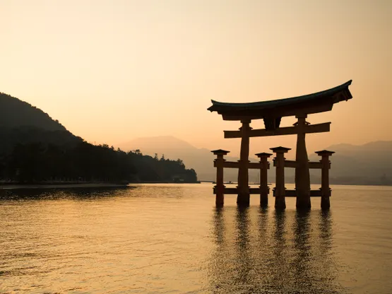 10 minutes on foot toward Itsukushima shrine from the pier accessible by ferry from Miyajimaguchi pier through Miyajimaguchi station