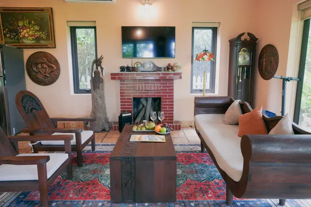 Biệt thự điều hòa này có 4 phòng ngủ riêng biệt, bếp đầy đủ tiện nghi, cùng 5 phòng tắm. TV màn hình phẳng được cung cấp.