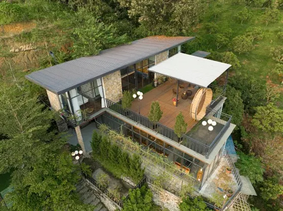 - 01 Villa với 5 Phòng Ngủ Khép kín:(1 phòng với 2 giường 1m6, 4 phòng mỗi phòng 1 giường 1.6m); Phòng Bếp: Rộng rãi, đầy đủ thiết bị nấu nướng, sân thượng ngắm cảnh view núi,