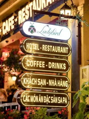 Tại Ladybird Sapa Hotel, khách sẽ tìm thấy nhà hàng phục vụ ẩm thực Mỹ, Việt và Âu. Bên cạnh đó, họ có thể yêu cầu món chay, không chứa sữa và đồ ăn Halal.