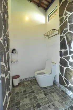 Nơi đây còn có phòng tắm riêng với vòi sen ở tất cả các căn, cùng đồ vệ sinh cá nhân miễn phí, máy sấy tóc và dép đi trong phòng.