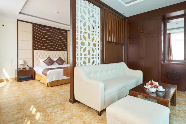 Với hệ thống phòng nghỉ sang trọng và đẳng cấp từ tầng 2 đến tầng 12 gồm 130 phòng, tất cả đều có cửa kính hướng biển và toàn cảnh khu vực Cửa Lò. Mỗi phòng được trang bị đầy đủ tiện nghi tiêu chuẩn cao cấp như tủ lạnh, điều hoà, máy sấy tóc, ấm siêu tốc, tivi truyền hình cáp và wifi internet cáp quang miễn phí.