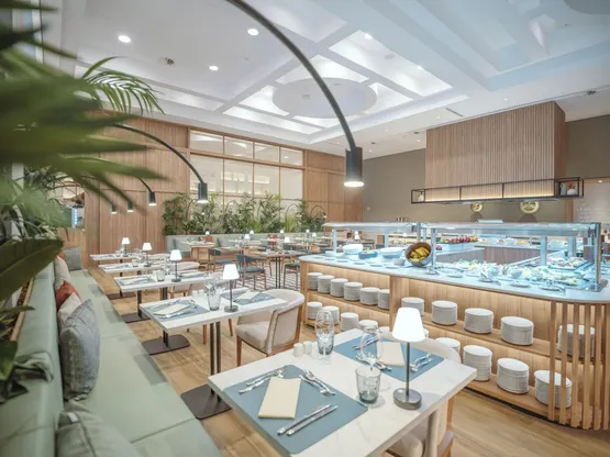 Khách có thể thưởng thức món ăn mang phong cách quốc tế tại World Café, một trong 7 nhà hàng ở Khách sạn hoặc nghỉ lại trong phòng và tận hưởng dịch vụ phòng 24 giờ. Thức ăn nhẹ cũng có ở quán cà phê. Giải khát với những ly nước mát lạnh sảng khoái tại 4 quầy bar/khu lounge hoặc 2 quán bar cạnh hồ bơi.