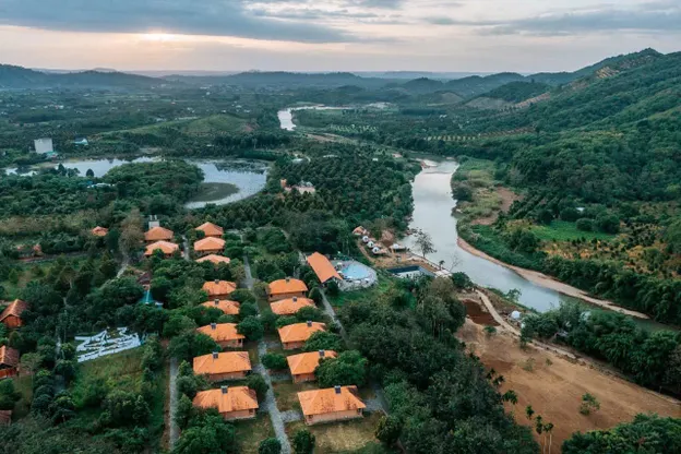 Orchard Home Resort Nam Cát Tiên được bao quanh bởi núi đồi