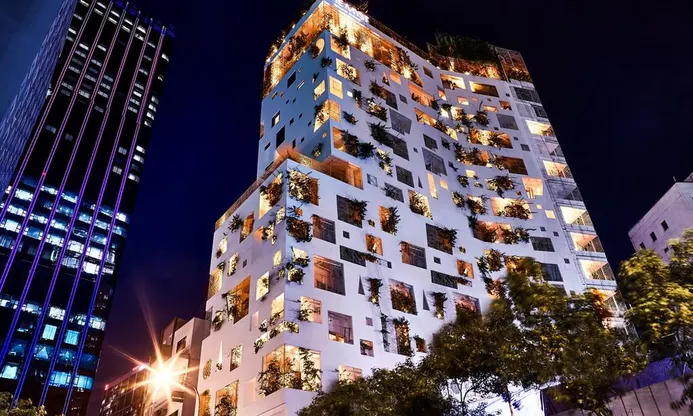 Phong cách kiến trúc hiện đại kết hợp với truyền thống Sài Gòn xưa, tạo nên thương hiệu đặc trưng cho khách sạn.