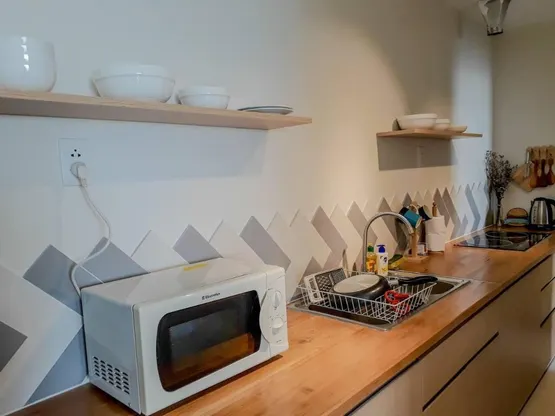 - Nhà bếp có dụng cụ nấu nướng.
